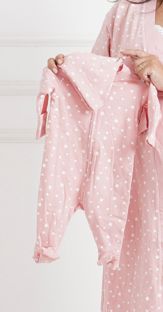 - A baby Girl dotted sleepsuit size New Born , is a Featuring enclosed feet with toe-safe, hat and integrated scratch mitts.